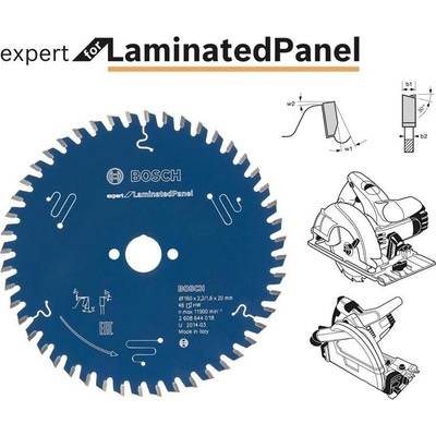 Pílový kotúč EXPERT for Laminated Panel 160 x 20 x 2,2mm Z48 - Bosch Pílový kotúč Expert for Laminated Panel pre ručné píly ponúka hladké povrchové rezy v laminátových...
